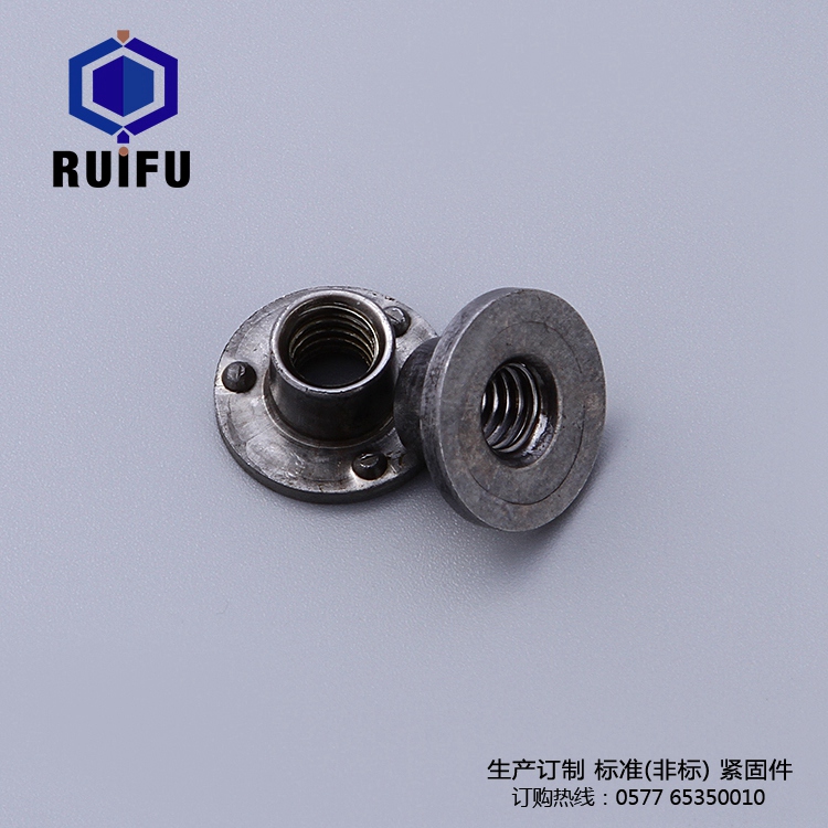 螺母扳拧槽所对应的垫圈外齿应折弯嵌入槽中,这样螺母就被固定了,T型焊接螺母止动垫圈内外都有齿,与T型焊接螺母所配合的外螺纹上应制出孔眼或槽以纳入垫圈内齿,T型焊接螺母旋紧就位后。