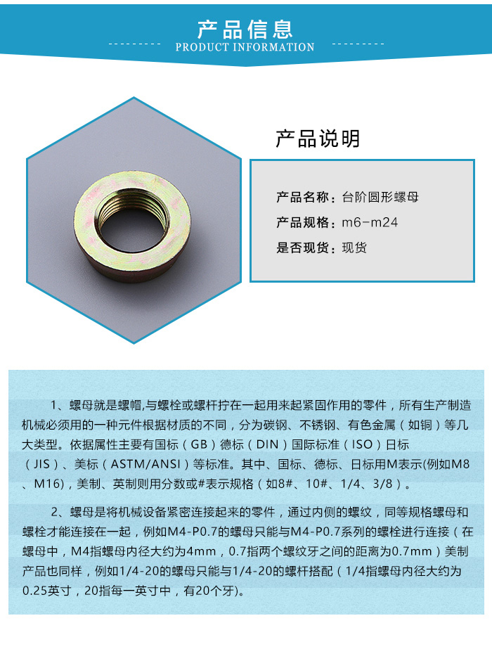 台阶圆形螺母厂家阿国标准件告诉您正确安装台阶圆形螺母的指南,让您在安装时轻松应用